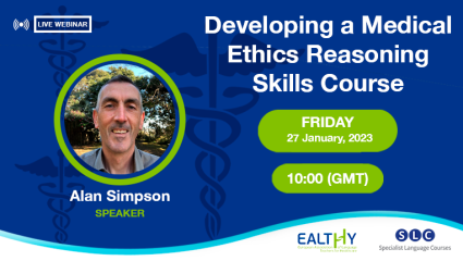 Alan Simpson was a speaker at the 5th English for Healthcare Conference. In the webinar, he will share the students’ start-of-life, therapeutic relationship, end-of-life, genetics and human research opinions, reflections and presentations.