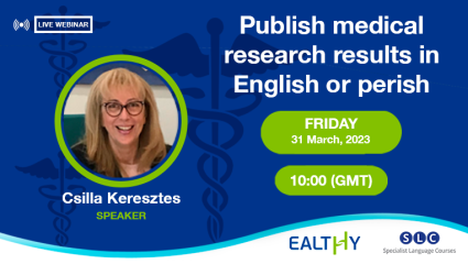 Csilla was a speaker at the 5th English for Healthcare Conference, where she gave a hugely interesting and always relevant talk on writing scientific articles in English, a lingua franca of medicine and science, by non-native English speakers.